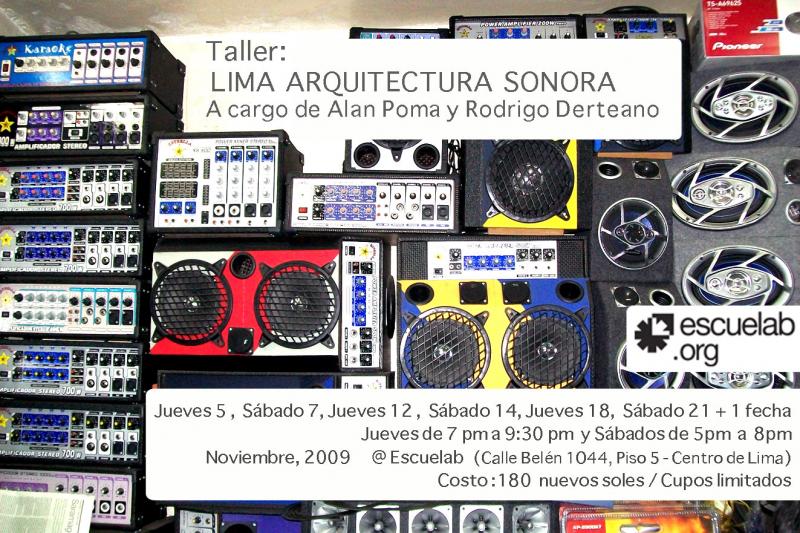 Taller de desarrollo de proyectos sonoros que toman como punto de partida el espacio urbano del Centro de Lima. En él se plantean dinámicas que contemplan situaciones acústicas que serán analizadas para luego aplicarlas a proyectos propios.